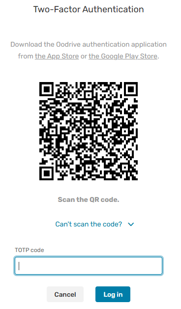 A QR code then appears on the screen, enabling you to add your Oodrive account to your authentication app.
