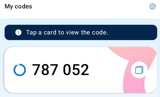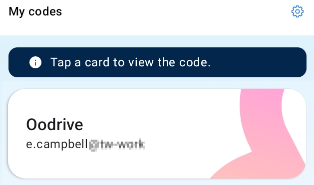 Tap the card showing your Oodrive account to obtain a one-time login code. This code is valid for 30 seconds.