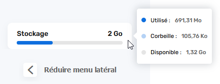 L'espace de stockage dont vous disposez s'affiche en bas du panneau de navigation. Vous pouvez ainsi voir :