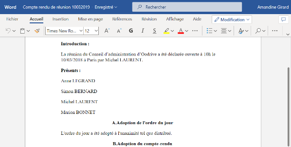 Cette fonctionnalité est particulièrement utile si vous souhaitez collaborer sur un document pour lequel vous ne disposez pas des droits de modification.