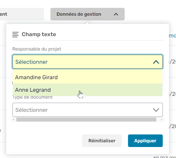 Utilisez la liste déroulante associée à un champ pour sélectionner la valeur de votre choix.