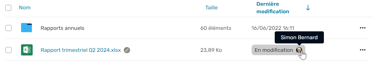 Passez votre souris sur le document pour voir le nom de la personne qui est en train de l'éditer.